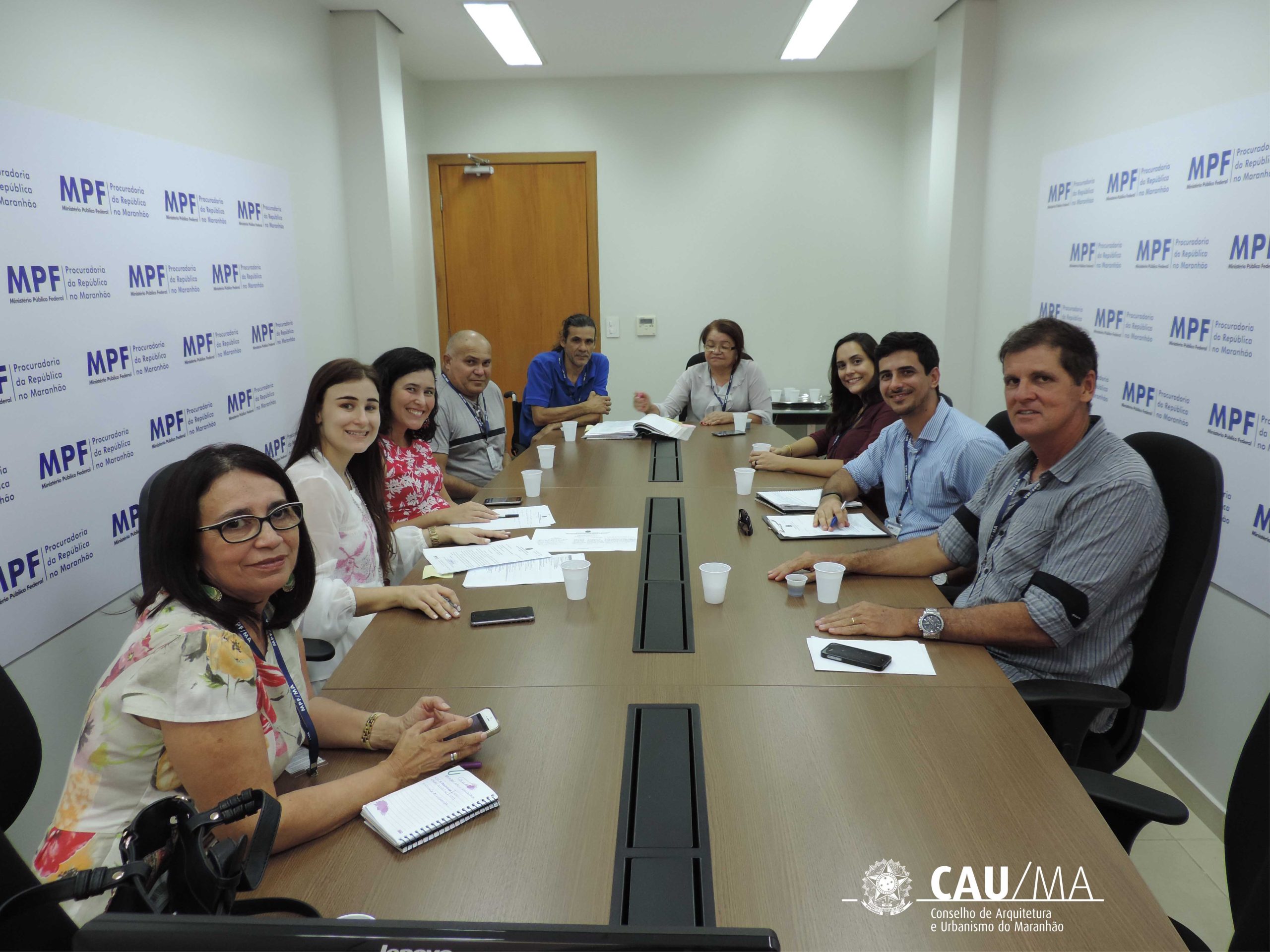 Estiveram na reunião a Procuradora da República, Dra. Talita de Oliveira, Procuradora Regional dos Direitos do Cidadão; Beatriz de Carvalho e Silva, Vice-presidente do Conselho Estadual dos Direitos da Pessoa com Deficiência; Maria Dalva Lessa de Carvalho, Assistente Social do Conselho Estadual dos Direitos da Pessoa com Deficiência; Dylson Ramos Bessa Jr., Presidente do Conselho Estadual dos Direitos da Pessoa com Deficiência; Vanessa da Cunha Cavalcante Silva, Analista de Fiscalização do CAU/MA; Luis Fernando Silva Cutrim, Gerente de fiscalização do CAU/MA; Hermes da Fonseca Neto, Presidente do CAU/MA; João Barbosa M. Neto, representante do Conselho Estadual dos Direitos da Pessoa com Deficiência e Nissa Maiara Silva Medeiros Furtado, Analista – Serviço Social assessora da PRDC.