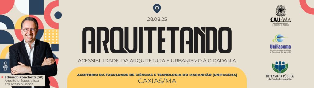 Promovido pelo Conselho de Arquitetura e Urbanismo do Maranhão (CAU/MA), com apoio do Centro Universitário UNIFACEMA e da Defensoria Pública do Estado do Maranhão, o evento contará com a presença de Eduardo Ronchetti, arquiteto especialista em acessibilidade, que compartilhará conhecimentos e experiências sobre como transformar espaços urbanos e edificações em ambientes verdadeiramente democráticos.