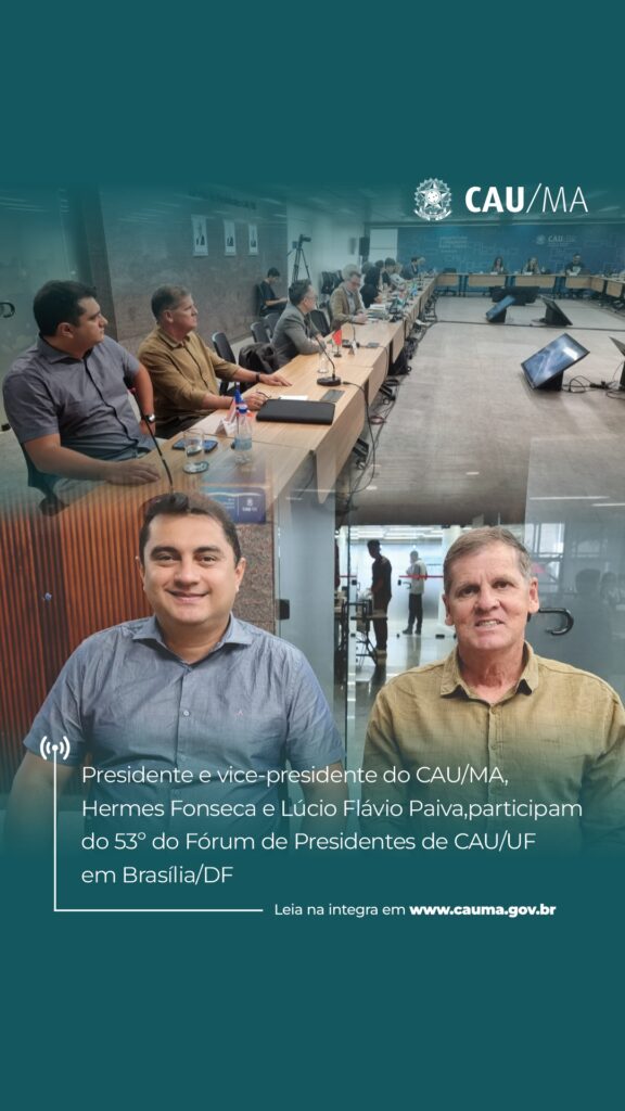 O CAU/MA esteve presente no evento com a participação do presidente Hermes Fonseca e do vice-presidente Lúcio Flávio Paiva. A presença da gestão maranhense no fórum reforça o compromisso da instituição em acompanhar as discussões nacionais, contribuir com propostas e fortalecer o papel do Conselho na valorização da arquitetura e do urbanismo.. O encontro reúne representantes das autarquias de todo o país para debater temas estratégicos, como o balanço da execução orçamentária, a implementação do Novo CAU Digital, a manutenção do Sistema de Comunicação e Certificação de Atribuições Profissionais (SICCAU), além do prazo para adesão ao REFIS do CAU e a fiscalização do patrimônio. A programação também contempla a apresentação do projeto a  ClubeCAU, que prevê vantagens e benefícios para profissionais da área.
