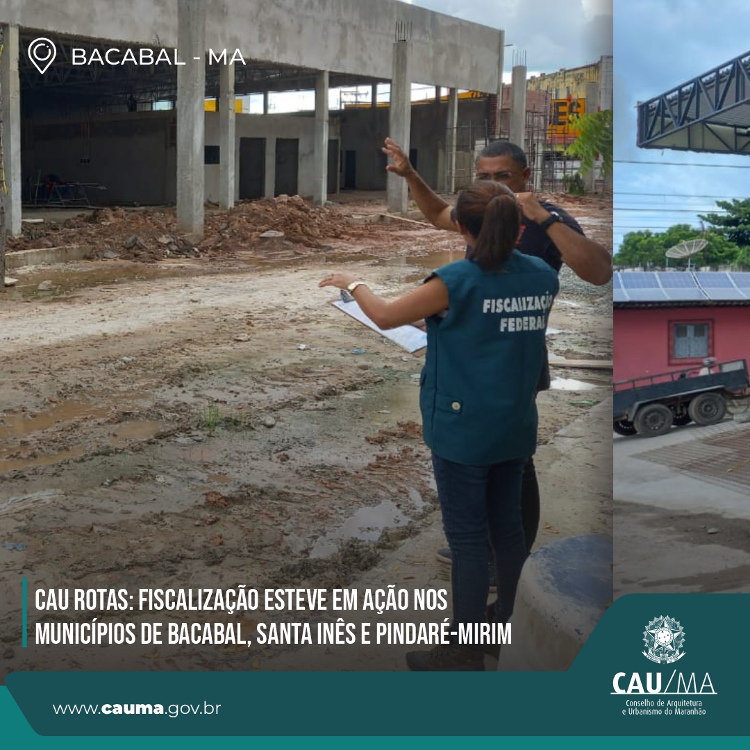 Equipe de fiscalização do CAU/MA esteve na mesorregião oeste do estado, em ação nos municípios de Bacabal, Santa Inês e Pindaré-Mirim.