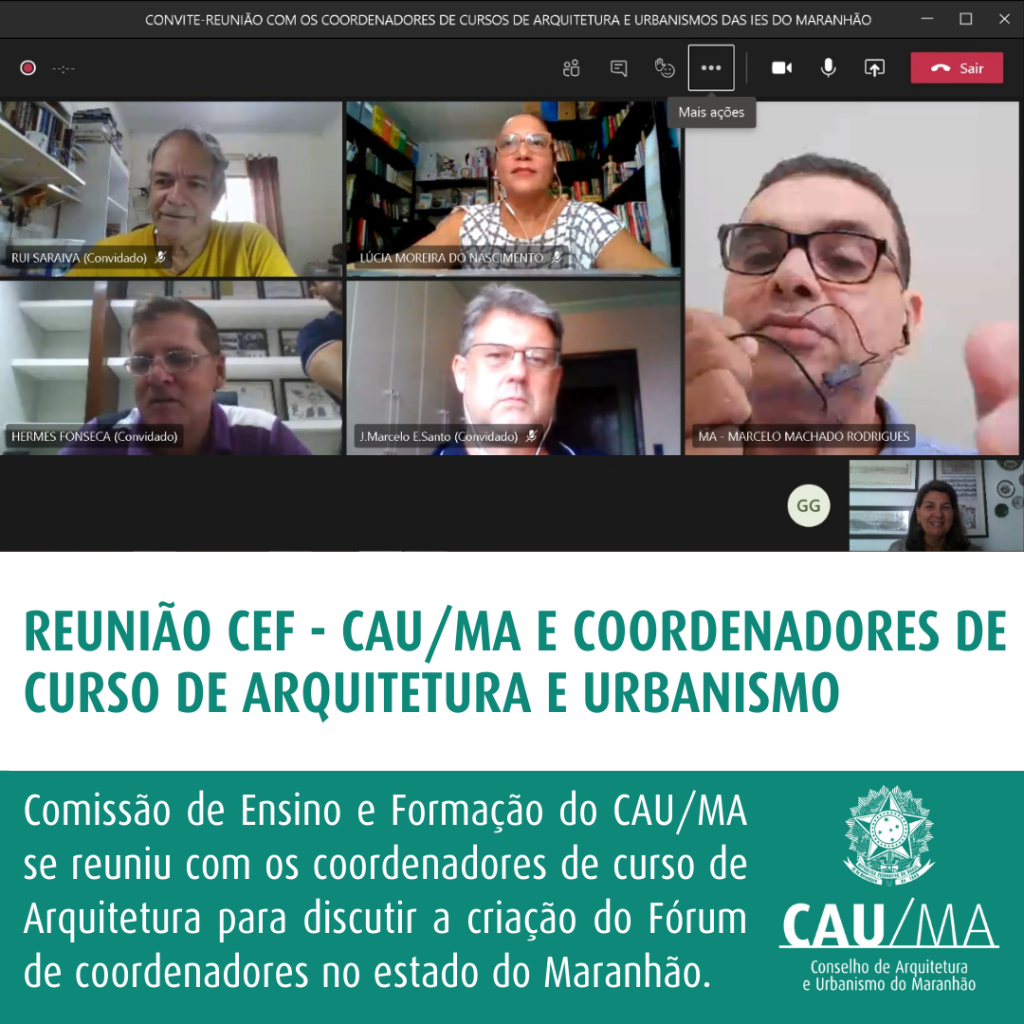 No mês de Março de 2021 foi realizada a 1ª Reunião da Comissão de Ensino e Formação do CAU/MA com os coordenadores de curso de Arquitetura e Urbanismo do Maranhão.