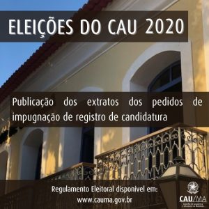 A Comissão Eleitoral do CAU/MA divulgou o extrato sobre impugnação de registro de candidaturas para as Eleições 2020, nesta sexta-feira, 04.